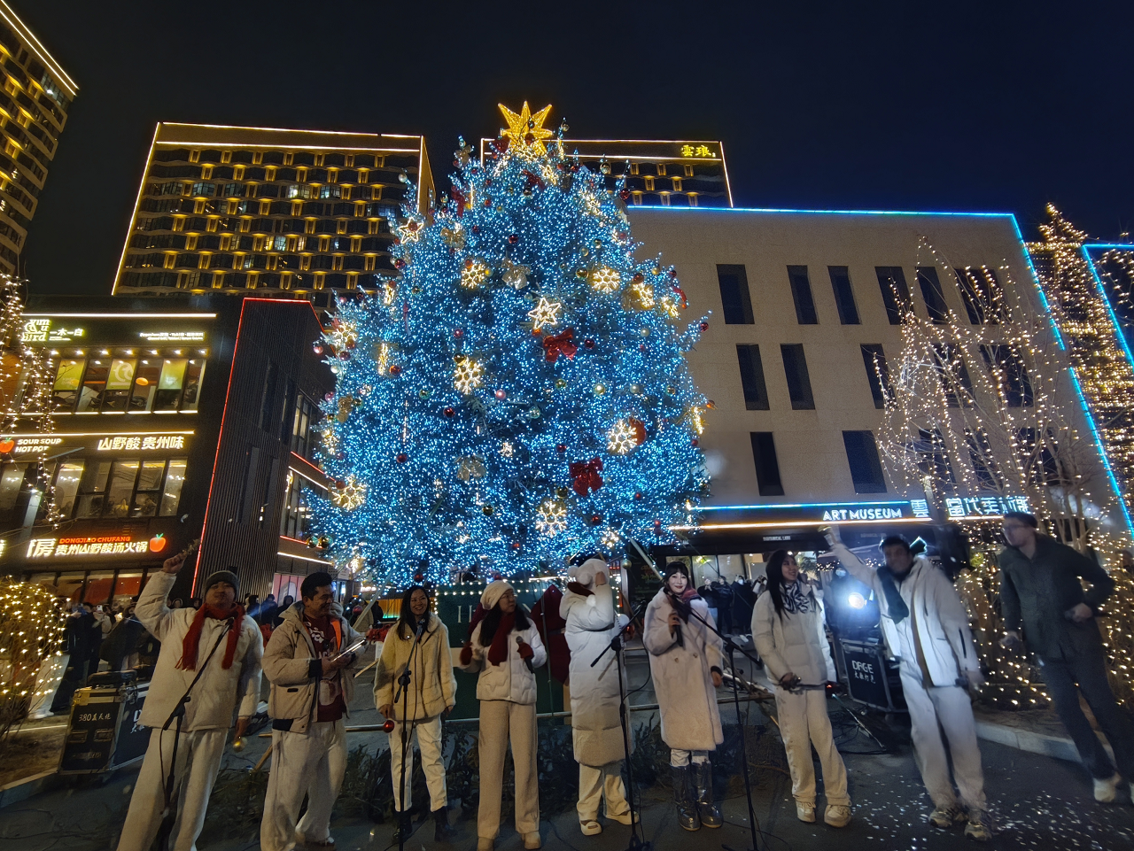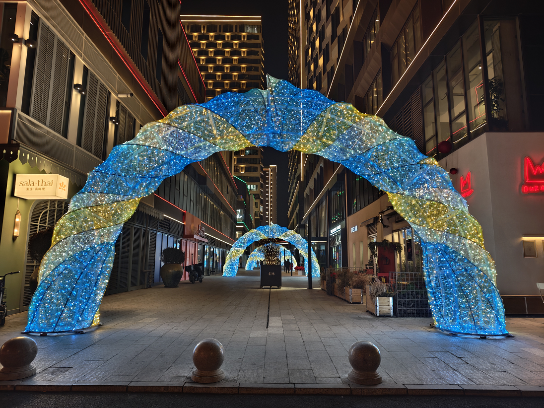 活動當(dāng)晚,阿卡貝拉樂團的動人歌聲為亮燈儀式拉開序幕。80萬顆LED燈珠組成的8米高流光燈帶同步點亮,與13米高的巨型云杉童話樹交相輝映,搭配光影瀑布、歐洲網(wǎng)紅天使燈陣、光影堤岸等多組藝術(shù)裝置,將青怡坊云瑯打造成流光溢彩的“童話秘境”。游客穿梭其中,步步皆景、處處可打卡,沉浸式感受“現(xiàn)實版童話世界”的獨特魅力。