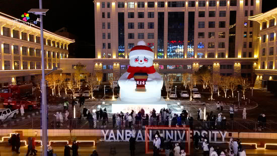 延邊大學(xué)正門西側(cè)則成為網(wǎng)紅打卡新地標(biāo)。12月31日17:18,超12米高的網(wǎng)紅大雪人正式亮相,雪人手持印有“延吉”字樣的咖啡杯,搭配紅帽紅圍巾的喜慶裝扮,成為城市跨年的標(biāo)志性景觀,也讓“延吉”城市標(biāo)識通過視覺符號深入人心。