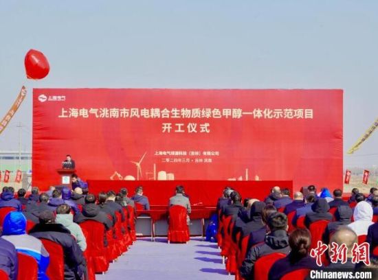 3月30日,中國首個規(guī)模化綠色甲醇項目——上海電氣洮南市風電耦合生物質綠色甲醇一體化示范項目在吉林洮南正式開工。洮南市委宣傳部供圖
