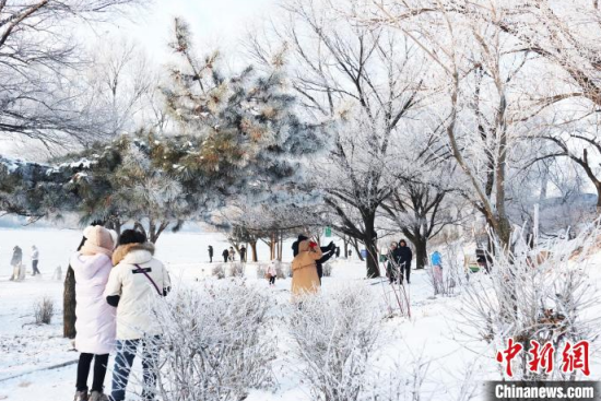 12月1日,吉林省吉林市,“小霧凇島”上游人如織。 中新社記者 蒼雁 攝