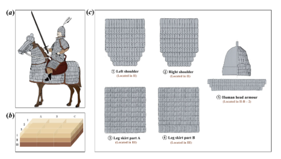 本研究對象是目前世界上已知最早的可復原甲騎具裝實物—出土于遼寧北票喇嘛洞墓地的珍貴遺存。研究結(jié)果表明,這套甲胄從結(jié)構(gòu)設計到材質(zhì)加工均體現(xiàn)出高度的技術(shù)成熟度,證明鮮卑在公元4至5世紀已具備先進的甲胄制造能力;而古蛋白質(zhì)組學分析首次證實,甲胄制作中使用了羊源材料——這一發(fā)現(xiàn)填補了古代游牧民族甲胄材質(zhì)研究的空白,為探討當時草原地區(qū)的動物資源利用、畜牧業(yè)發(fā)展與軍事手工業(yè)的關(guān)聯(lián)提供了直接證據(jù)。