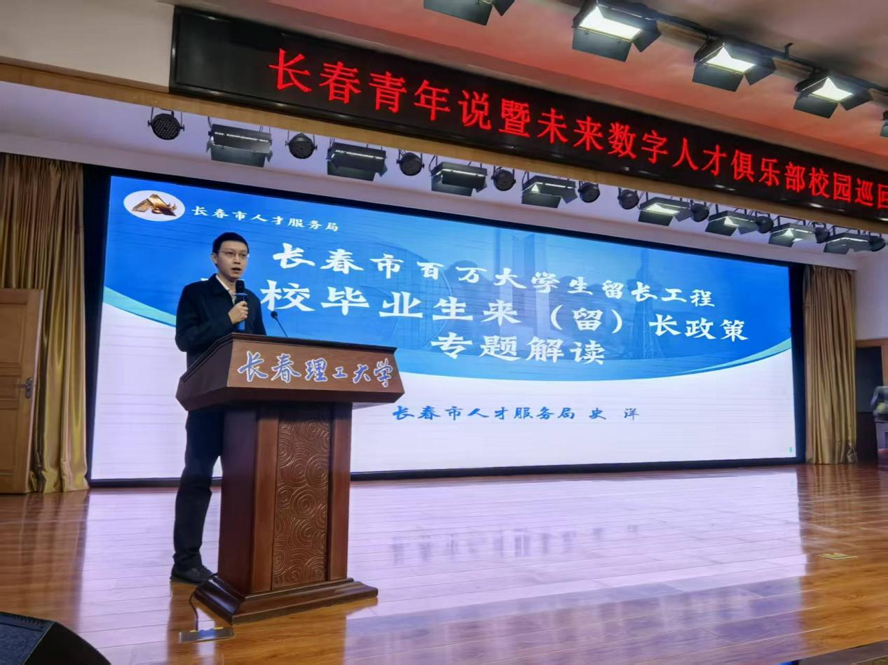 為積極推進(jìn)青年發(fā)展型城市建設(shè),服務(wù)長春市“長聚學(xué)子·春城暖才”人才工作部署,11月12日,由長春市政務(wù)服務(wù)和數(shù)字化建設(shè)管理局、共青團(tuán)長春市委主辦,長春市數(shù)字經(jīng)濟(jì)協(xié)會、長春市人才服務(wù)局、長春理工大學(xué)承辦的“長聚學(xué)子·春城暖才”長春青年說暨未來數(shù)字人才俱樂部校園巡回宣講活動在長春理工大學(xué)正式啟動。