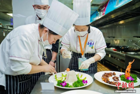 當(dāng)天上午,多支代表隊(duì)在后廚忙碌,操作臺上,參賽廚師依照藥膳指導(dǎo)師開具的方子,將精選的人參等藥材進(jìn)行預(yù)處理,再與母雞、松花江魚等主料一同入鍋!斑@道湯適合體虛者,我們控制了人參用量,確保其口味和養(yǎng)生功效!币晃贿x手介紹。