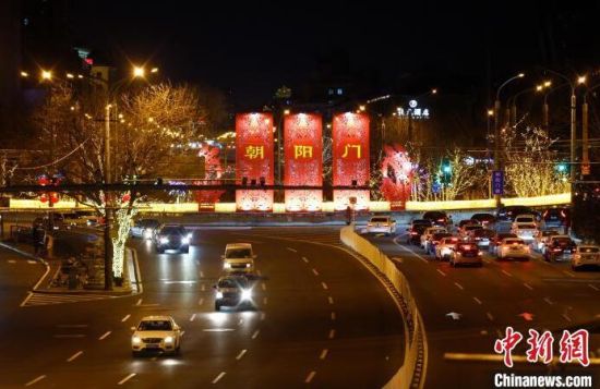 14晚,北京朝陽區(qū)春節(jié)景觀全面亮燈!≈行律缬浾 富田 攝