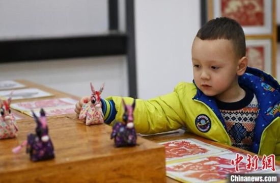 資料圖為甘肅省蘭州市一非遺產(chǎn)品展廳內(nèi),外國(guó)小朋友正在挑選非遺產(chǎn)品。 中新社記者 李亞龍 攝