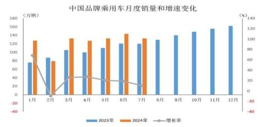 2024年1-7月,中國(guó)品牌乘用車共銷售874.2萬輛,同比增長(zhǎng)21.6%,占乘用車銷售總量的62.6%,銷量占有率比上年同期提升8.8個(gè)百分點(diǎn)。(完)