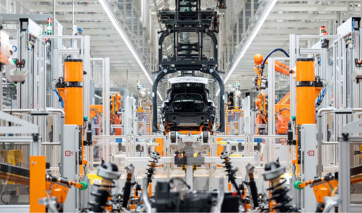 全域IT架構的引入,使得所有設備、流程和數(shù)據(jù)在云端互聯(lián)互通。最直觀的體現(xiàn)是在焊裝車間,824臺機器人協(xié)同作業(yè),焊接自動化率達到100%,每輛車的4000多個焊點全部由機器人精準完成。總裝車間視覺檢測系統(tǒng)通過20臺高精度相機進行3D激光與2D光譜交叉掃描,將裝配質量檢測精度提升至0.2毫米。