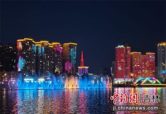 音樂(lè)噴泉位于延吉市延吉大橋和延西橋之間的布爾哈通河河面,全長(zhǎng)158米、寬12米,可噴射最高100米的水柱,還伴隨音樂(lè)表演“龍行天下”“擎天玉柱”“與時(shí)俱進(jìn)”“辮子舞”“花開(kāi)富貴”“千手觀音”“彩虹高掛”等多種水舞形態(tài),造型豐富,觀賞性極強(qiáng)。“水舞秀”與周?chē)h(huán)境融為一體,充分展現(xiàn)延吉的民族特色和文明城市形象,為市民和游客提供精彩的視覺(jué)盛宴。