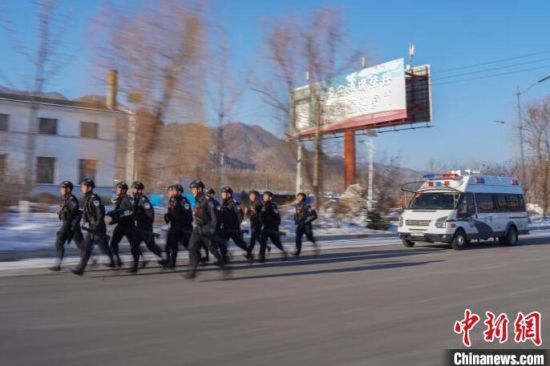民警全副武裝開展十公里越野跑。鄭博文 攝