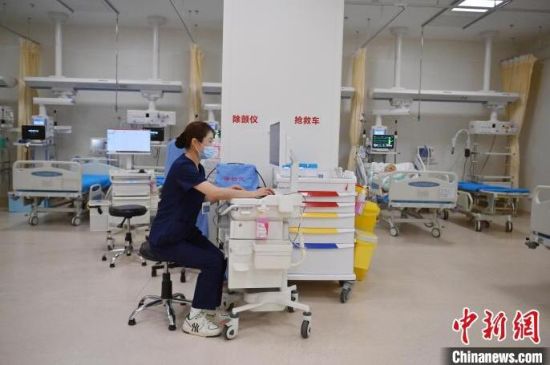 張力(左)對急診監(jiān)護區(qū)每位患者的情況都爛熟于心。護士們與患者朝夕相處,細心照護,關(guān)系已經(jīng)超出了普通的醫(yī)患關(guān)系。張力說:“他們的親屬不能在身邊陪伴,但是我們每天可以和他們在一起,我們和這些患者的關(guān)系像親人一樣! 張瑤 攝