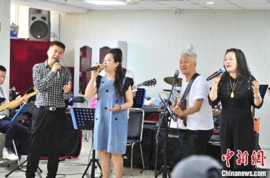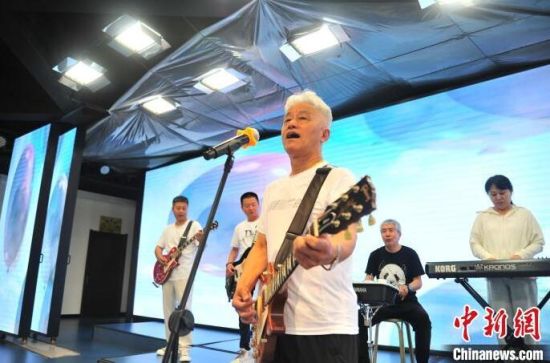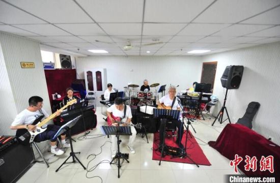 7月4日,吉林長春,火焰老年樂隊在演奏搖滾樂。這支樂隊有7名樂手和7名主唱,平均年齡62歲,是吉林省為數(shù)不多的老年搖滾樂隊。他們在激昂的樂聲中實現(xiàn)自己的搖滾夢,尋回年輕的感覺。