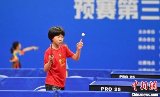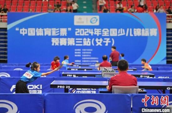 8月6日,吉林長春,選手在比賽。當天,2024年全國少兒乒乓球錦標賽預(yù)賽第三站(女子)在長春開賽,來自全國47個代表隊的少兒乒乓球運動員同場比拼球技。(中新社記者 張瑤 攝)