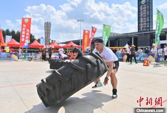 8月16日,吉林長(zhǎng)春,農(nóng)民趣味運(yùn)動(dòng)會(huì)在長(zhǎng)春農(nóng)博園精彩上演,運(yùn)動(dòng)會(huì)設(shè)置了“喜獲豐收”“回娘家”“農(nóng)田大力士”等充滿鄉(xiāng)村特色的比賽項(xiàng)目。圖為選手在“喜獲豐收”比賽中。中新社記者 張瑤 攝