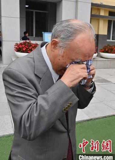 9月14日,5名侵華日軍后裔來到吉林省公主嶺市站前小學,替他們曾作為侵華日軍的父輩向中國人民謝罪。其中,76歲的黑井秋夫,其父侵華期間曾在公主嶺市駐軍,在當?shù)胤赶聡乐氐膽?zhàn)爭罪行。圖為侵華日軍后裔在謝罪現(xiàn)場流下淚水。(中新社記者 張瑤 攝)