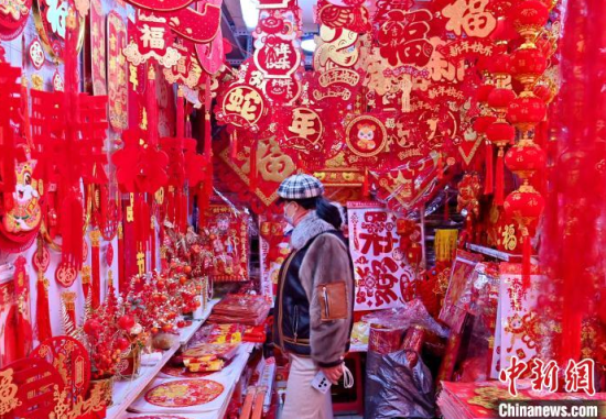 1月10日,吉林長春,市民在選購蛇年新春飾品。隨著農(nóng)歷春節(jié)的臨近,燈籠、春聯(lián)、年畫、福字等新春飾品逐漸熱銷。中新社記者 張瑤 攝