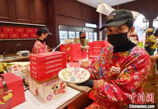 2月11日,吉林長(zhǎng)春,市民在選購(gòu)元寶湯圓。元宵節(jié)將至,長(zhǎng)春一商家推出卡通湯圓、元寶湯圓、拉絲芝士元宵等,形象可愛(ài)、口味多元,吸引大量市民選購(gòu)。中新社記者 張瑤 攝