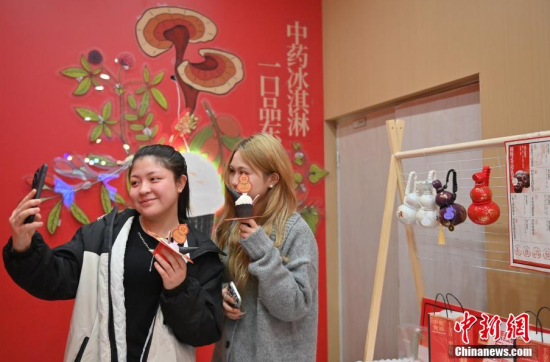 3月12日,在長春一家商場(chǎng)的中藥甜品店,工作人員在舀取中藥冰淇淋。這家中藥甜品店將刺五加、人參、靈芝等中藥與傳統(tǒng)甜品相結(jié)合,推出了中藥冰淇淋、中藥茶飲等產(chǎn)品,吸引大量民眾體驗(yàn)。(中新社記者 張瑤/攝)