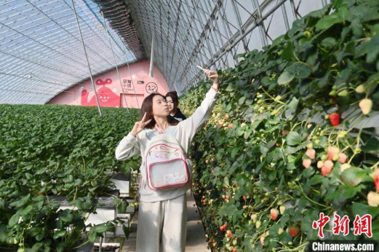 3月14日,游客在位于吉林省長春市雙陽區(qū)奢嶺街道的采摘園采摘草莓。當天,第十一屆雙陽奢嶺溫泉草莓旅游季拉開帷幕,大棚內(nèi)的草莓也正迎來盛果期。據(jù)悉,奢嶺草莓園是吉林省內(nèi)規(guī)模最大的草莓種植、采摘基地。中新社記者 張瑤 攝