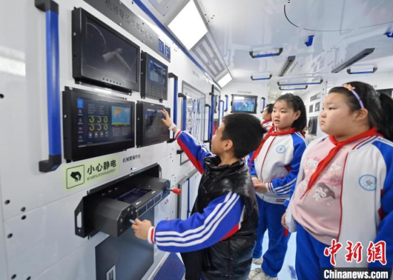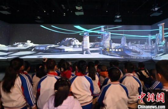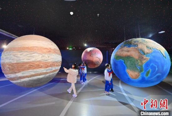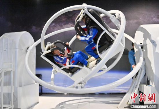 4月9日,吉林長春,小朋友在參觀航天服模型。中國航天日臨近,不少小朋友來到筑夢星辰(長春)航天科教文旅館,通過互動體驗學(xué)習航天知識,探索宇宙的奧秘。中新社記者 張瑤 攝