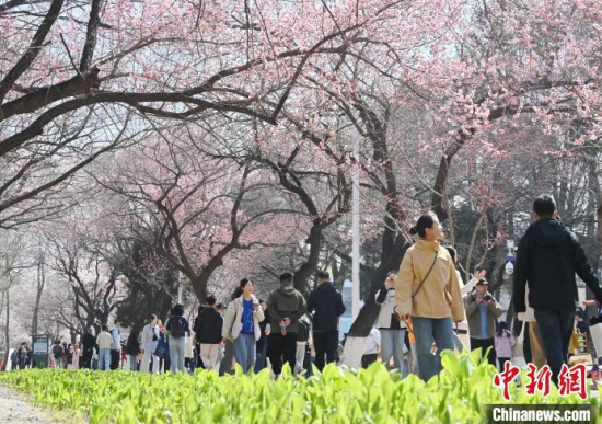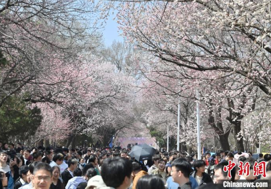 4月20日,吉林長(zhǎng)春,吉林大學(xué)校園內(nèi)杏花競(jìng)相綻放,匯成粉白色的海洋,吸引市民前來(lái)賞花、拍照。 中新社記者 張瑤 攝