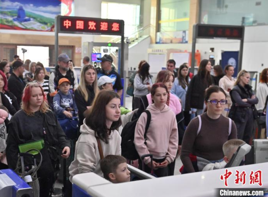 5月30日,吉林琿春,俄羅斯游客在商場購物。近年來,吉林省琿春市依托邊貿(mào)便利、服務(wù)完善等優(yōu)勢,正成為俄羅斯游客熱門跨境消費(fèi)目的地。據(jù)琿春出入境邊防檢查站統(tǒng)計(jì),今年以來,經(jīng)琿春口岸出入境的客流量超15萬人次。中新社記者 張瑤 攝