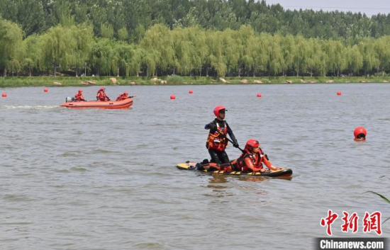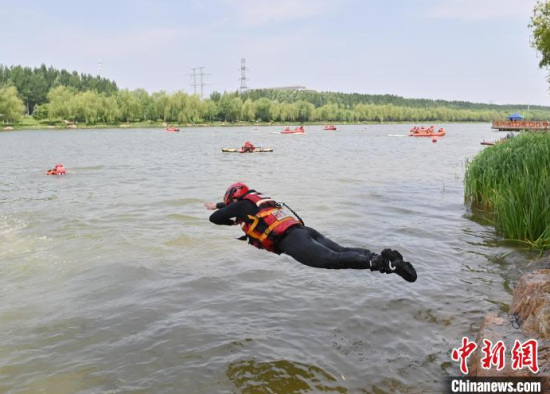 6月18日,長春市消防救援支隊開展水域救援實戰(zhàn)訓演。此次訓演按照不同救援場景需要,設置了繩索救援、潛水救援、入水救援、岸邊救援和IRB實操等5個訓練區(qū)域32項訓練科目。中新社記者 張瑤 攝