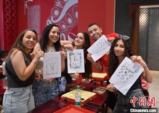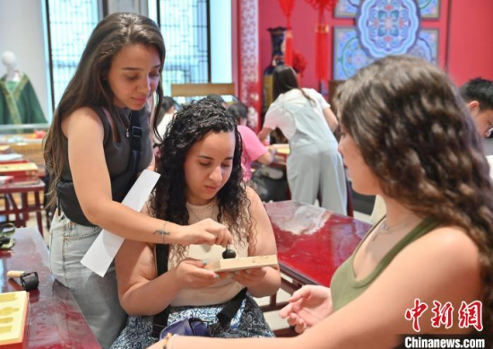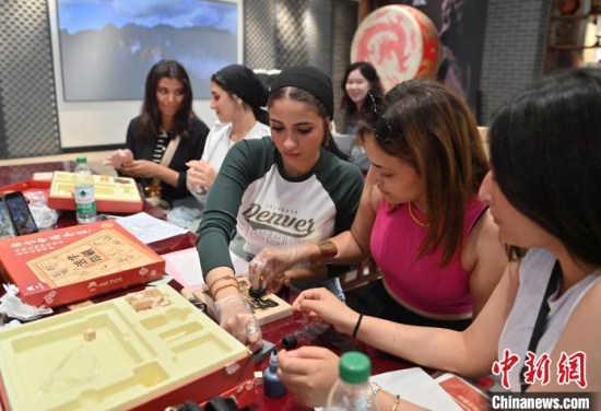 6月24日,吉林長(zhǎng)春,埃及青年體驗(yàn)活字印刷術(shù)。當(dāng)天,來自美國、埃及、印度尼西亞等國家的青年在長(zhǎng)春體驗(yàn)?zāi)嗨、活字印刷術(shù),參觀一汽紅旗文化展館,近距離感受中國文化的魅力。中新社記者 張瑤 攝