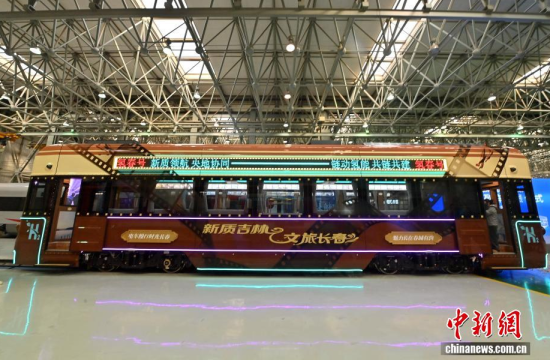 10月16日,中國首列氫能文旅列車“氫春號”在吉林長春正式下線。該列車由中車長春軌道客車股份有限公司研制,采用氫能動力系統(tǒng),無需接觸網(wǎng)供電,運行時的唯一產(chǎn)物是水,真正實現(xiàn)了零碳排放。列車支持1至6節(jié)的靈活編組,能夠滿足城市通勤與文化旅游等多元化線路需求!皻浯禾枴钡牧料啵馕吨鴼淠茉谲壍澜煌▓鼍跋碌纳虡I(yè)化從實驗室走向應用。中新社記者 張瑤 攝