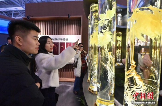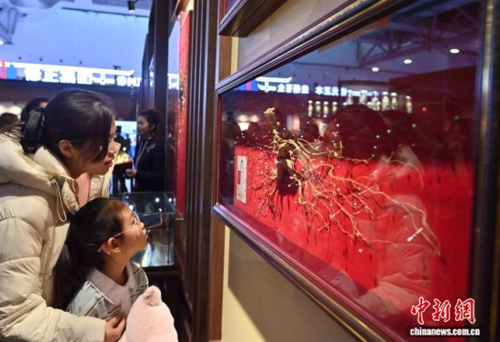 12月7日,吉林長春,參觀者在參觀人參。當日,2025長春國際醫(yī)藥健康產(chǎn)業(yè)博覽會開幕,具有當?shù)靥厣那暌吧絽、人參標本在人參展區(qū)展出,吸引了參觀者的目光。中新社記者 張瑤 攝