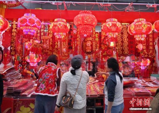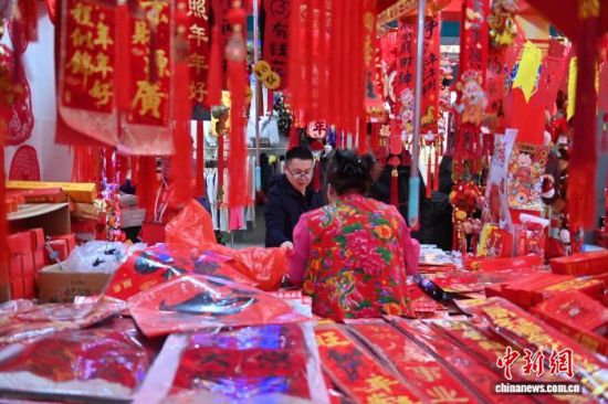 2月12日,長春一家商場的年貨區(qū)年味十足。隨著農(nóng)歷馬年春節(jié)的臨近,各類生肖飾品、年節(jié)掛飾銷售持續(xù)升溫,琳瑯滿目的新春飾品吸引民眾駐足挑選。中新社記者 張瑤 攝