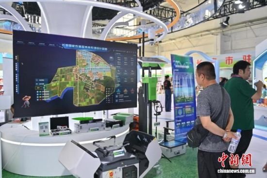 參觀者在參觀長(zhǎng)春國(guó)家農(nóng)高區(qū)未來(lái)農(nóng)場(chǎng)設(shè)計(jì)藍(lán)圖!埇 攝