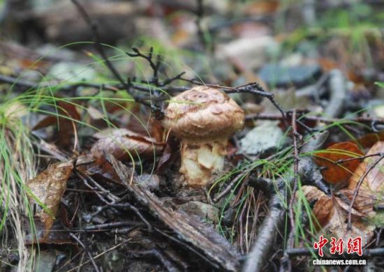 9月20日,吉林延邊,和龍林業(yè)局青山林場的松茸破土而出。 李軍俊 攝
