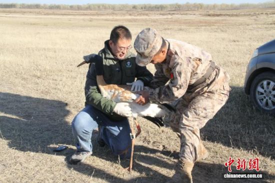 這只編號為JM-219的白鶴半個月前在黑龍江勝山國家級自然保護(hù)區(qū)附近被救護(hù),被村民發(fā)現(xiàn)時體力透支、頭部帶傷。勝山保護(hù)區(qū)工作人員將其送入救助站喂食小魚并進(jìn)行康復(fù)護(hù)理。為幫助它重返遷徙群體,該保護(hù)區(qū)決定將其轉(zhuǎn)送至白鶴遷徙路線的重要節(jié)點(diǎn)——吉林莫莫格國家級自然保護(hù)區(qū)。