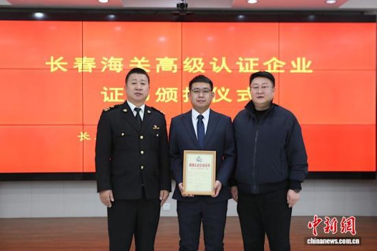 長(zhǎng)春海關(guān)向企業(yè)頒授證書。(長(zhǎng)春海關(guān)供圖)